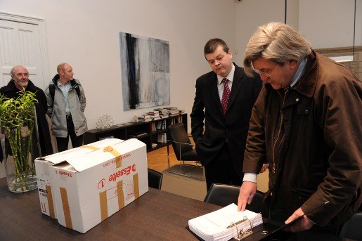 Een gerechtsdeurwaarder heeft vrijdagmorgen aan de burgemeester 637 bezwaarschriften overhandigd tegen de nieuwe parking Schuttersvest.